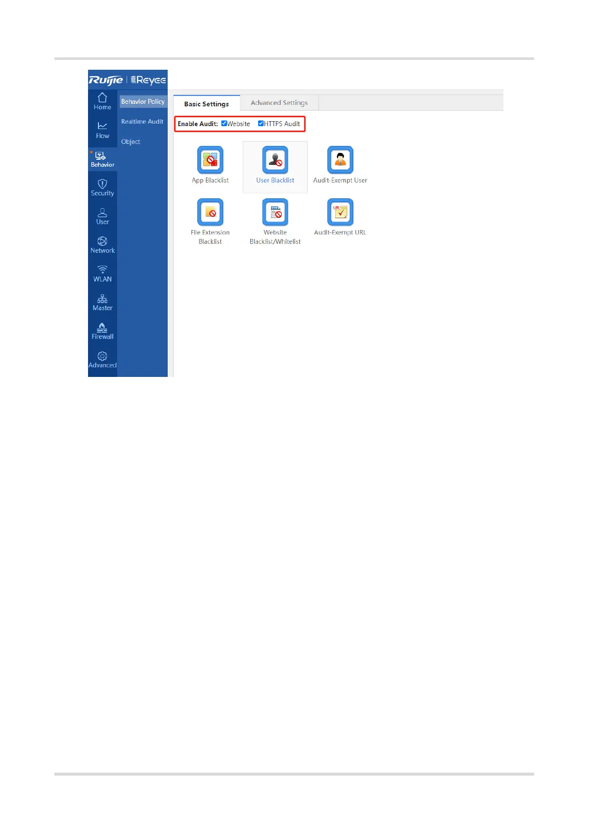 2. Choose Flow > Behavior Policy > Basic Settings and click User Blacklist.