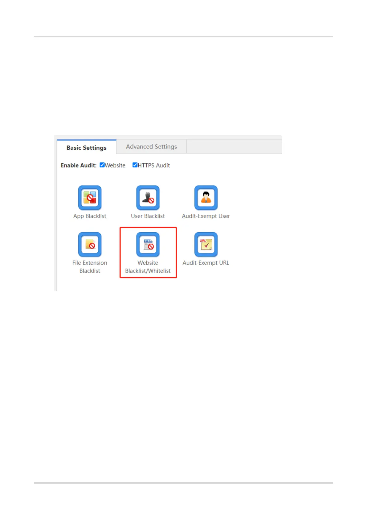 (1) Choose Behavior > Behavior Policy > Basic Settings and click Website Blacklist/Whitelist.