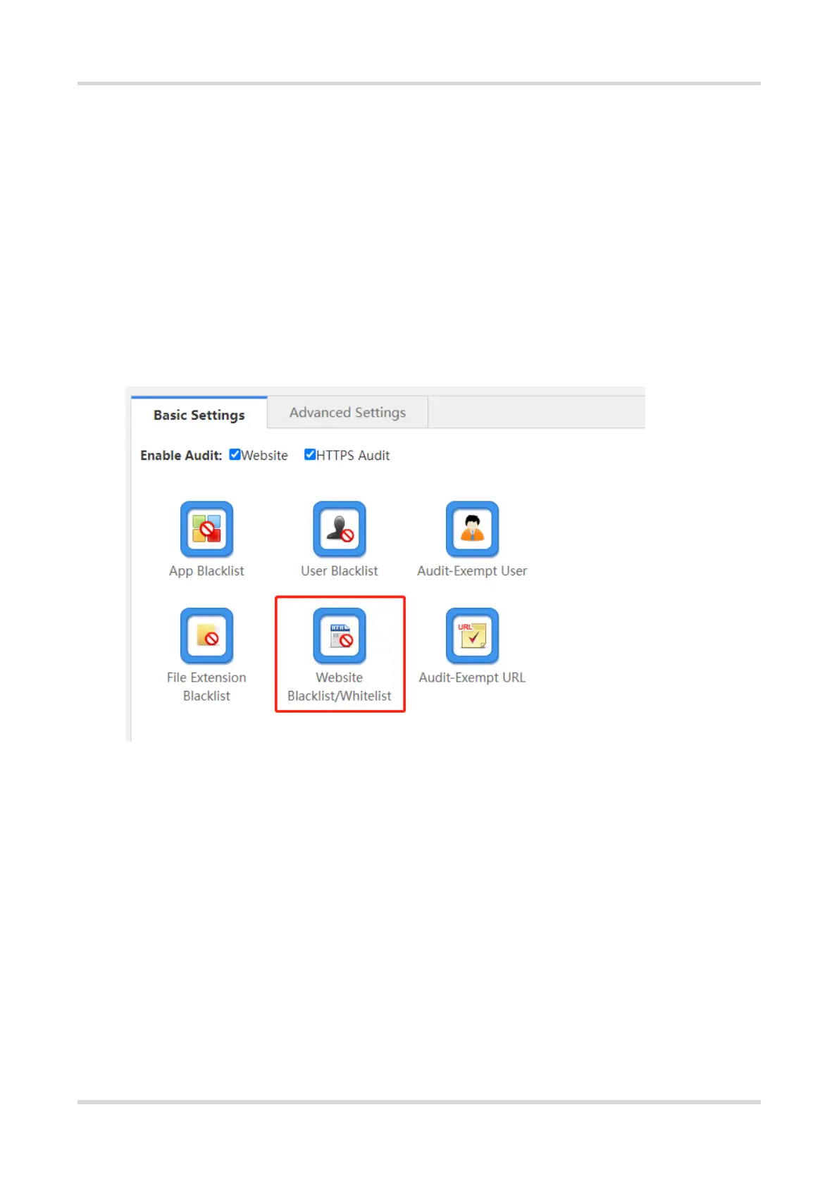 (1) Choose Behavior > Behavior Policy > Basic Settings and click Website Blacklist/Whitelist.