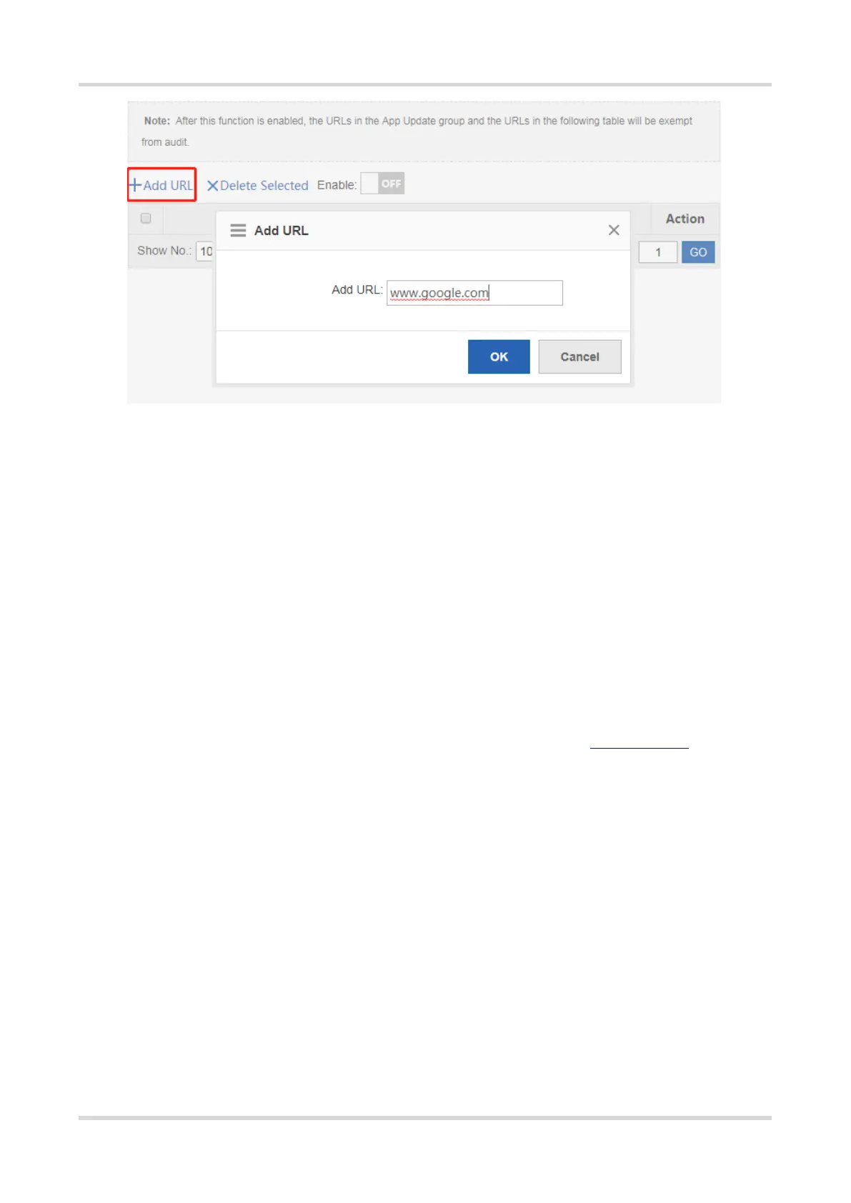 An audit record is generated after you delete www.google.com from audit-exempt websites and access the