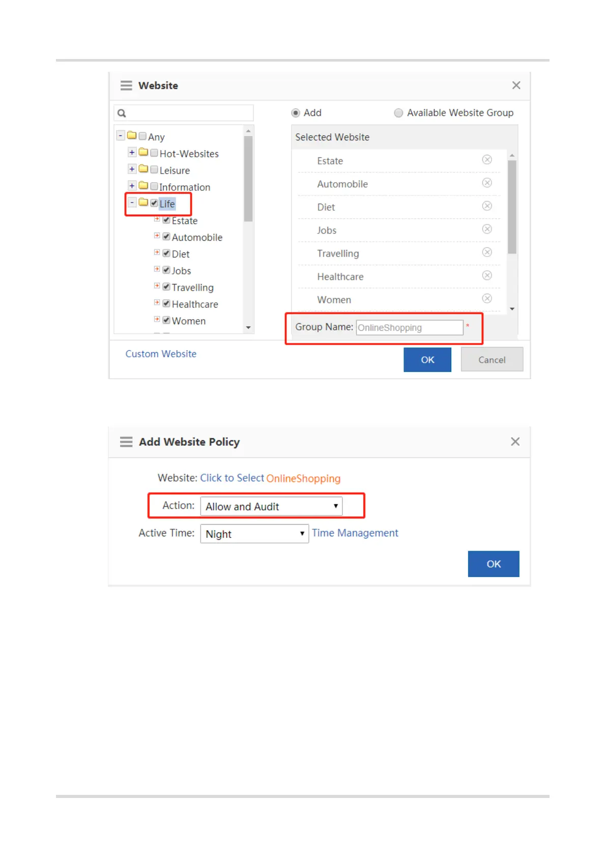 d Select Deny and Audit from the Action drop-down list box.