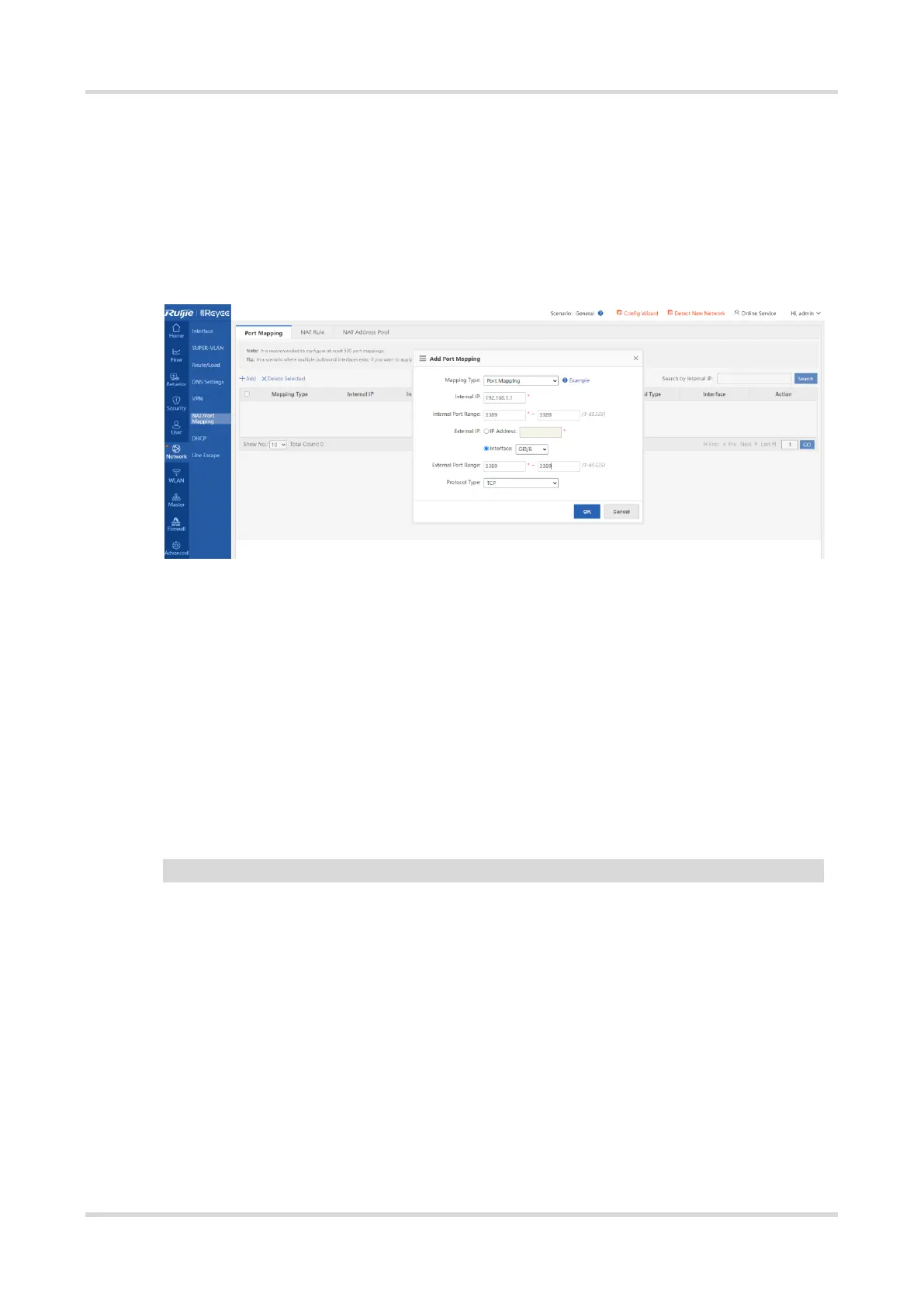 Choose Network > NAT/Port Mapping > Port Mapping and add a port mapping entry.