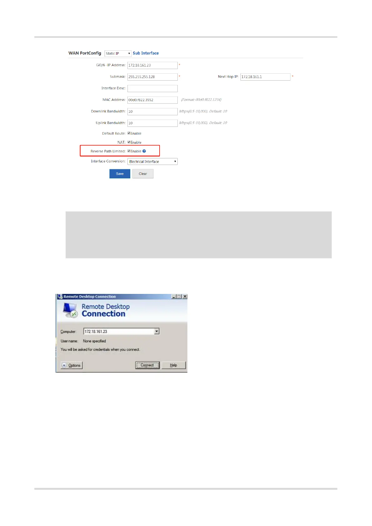 displayed. Enter the IP address of the WAN port.