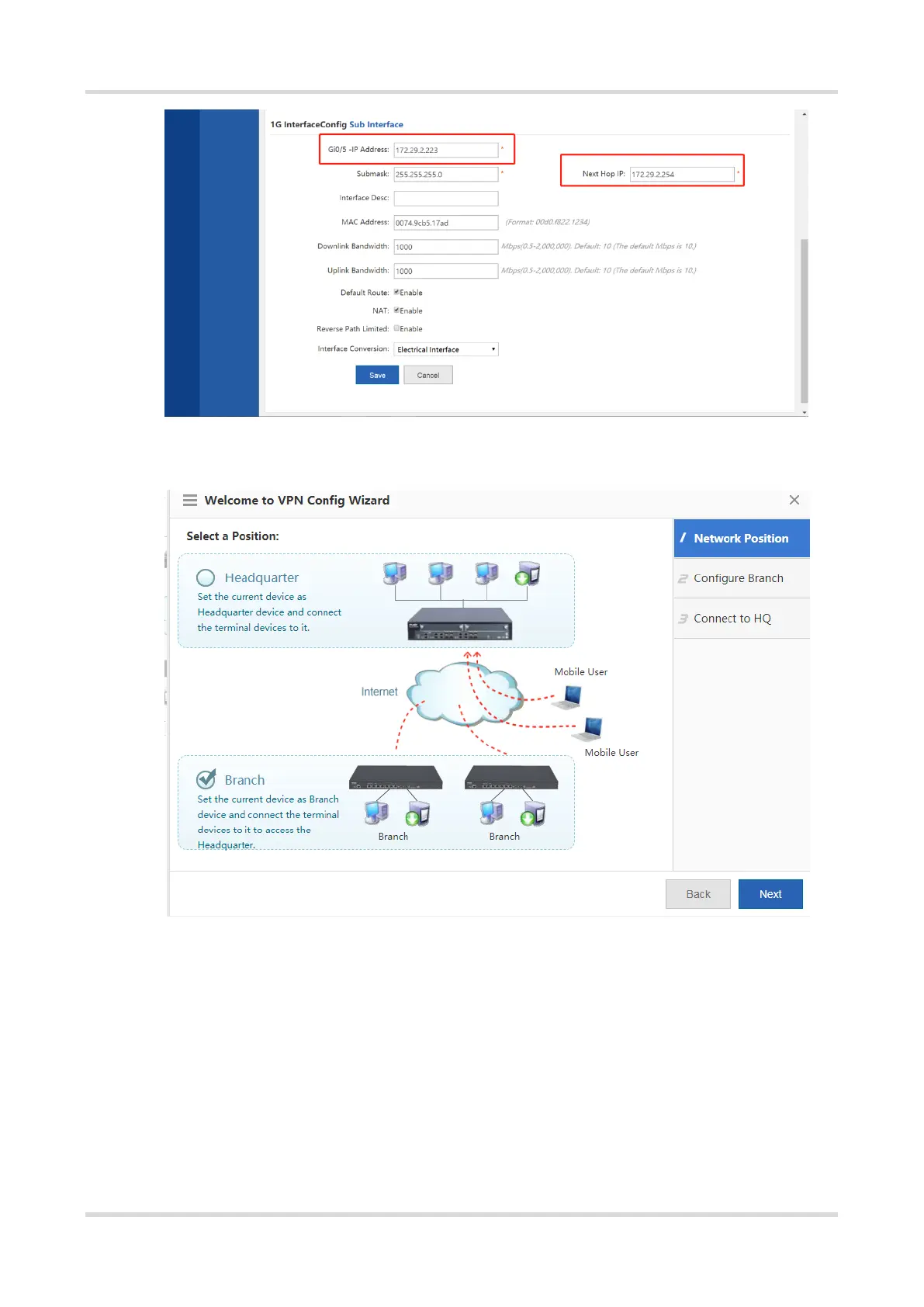 b Choose Network > VPN and click Configure. Select Branch and click Next.