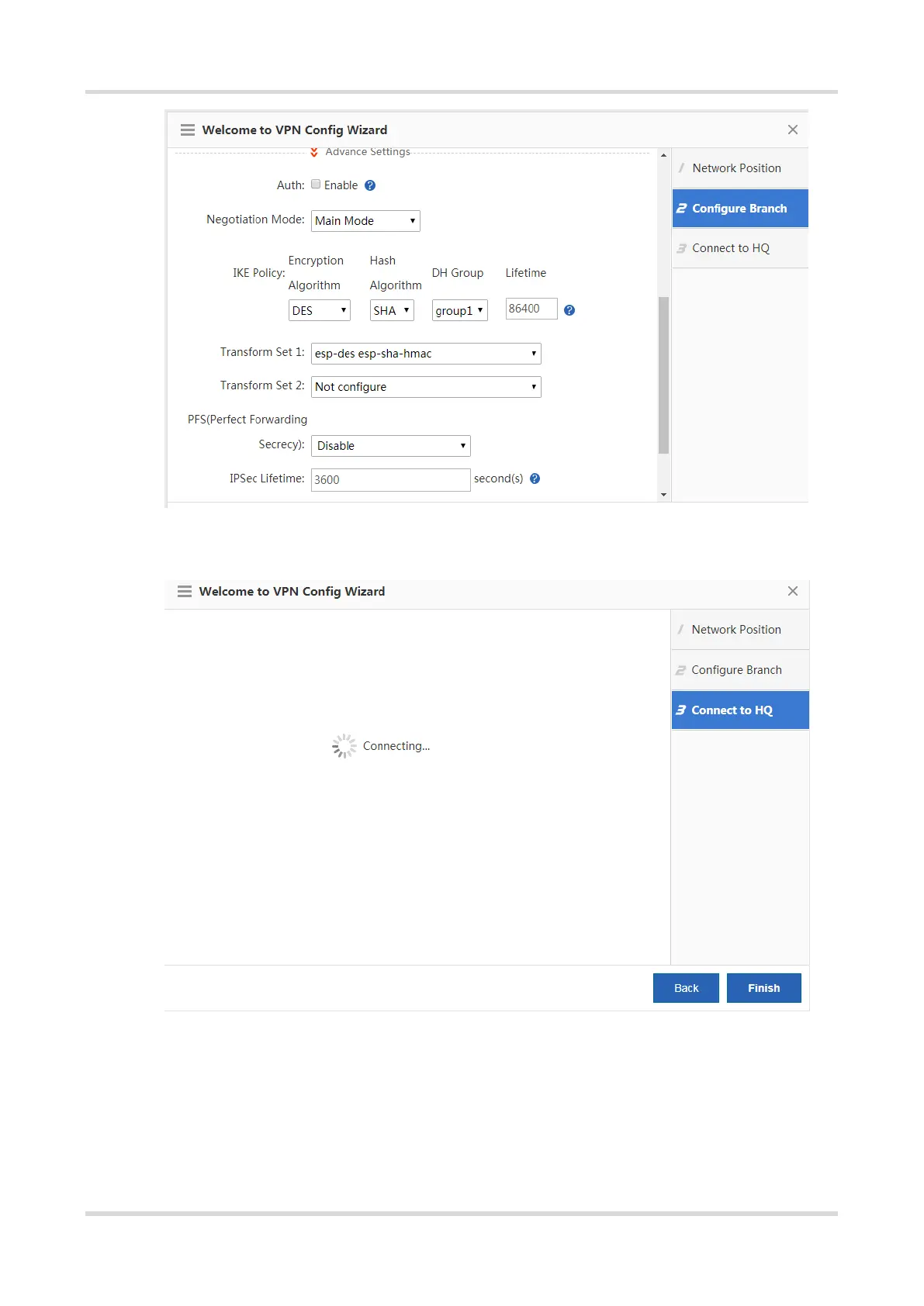 a Choose Network > VPN and click Configure. Select Headquarter and click Next.