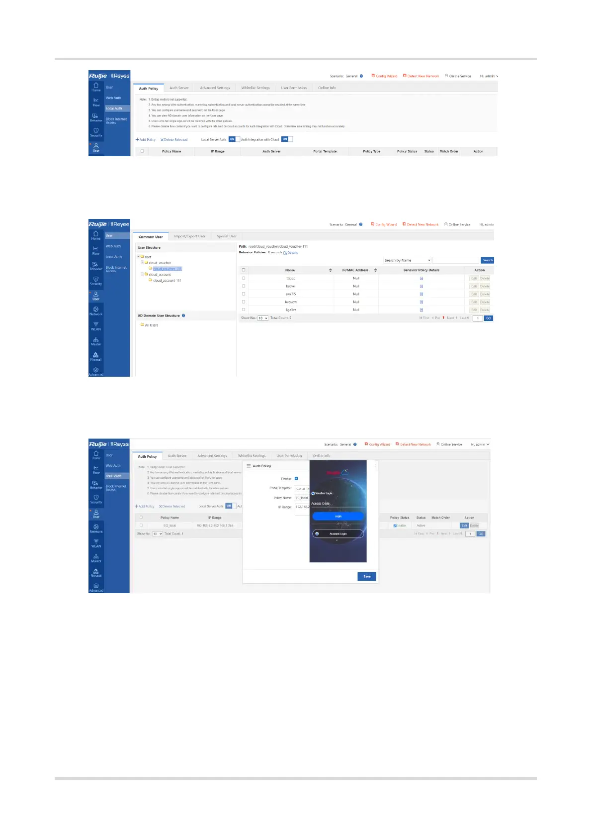 (5) Log in to the router and choose User > User. Users synchronized from Ruijie Cloud (voucher and account)