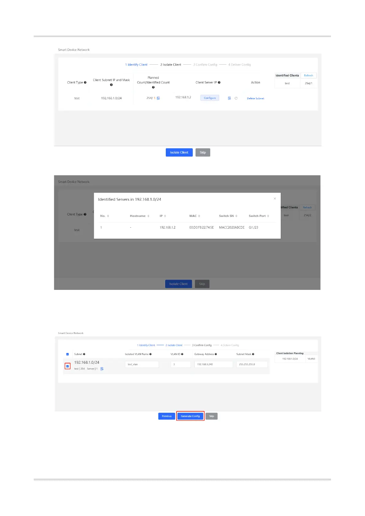 target network segment and click Generate Config.