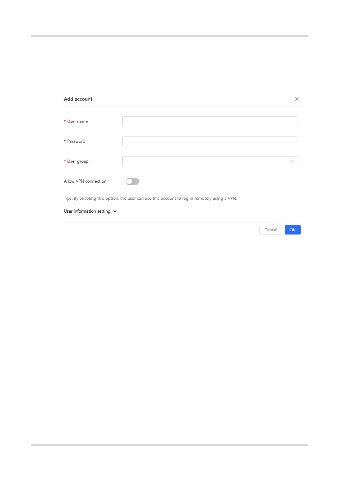 Allow VPN connection: By enabling this option, the user can use this account to log
