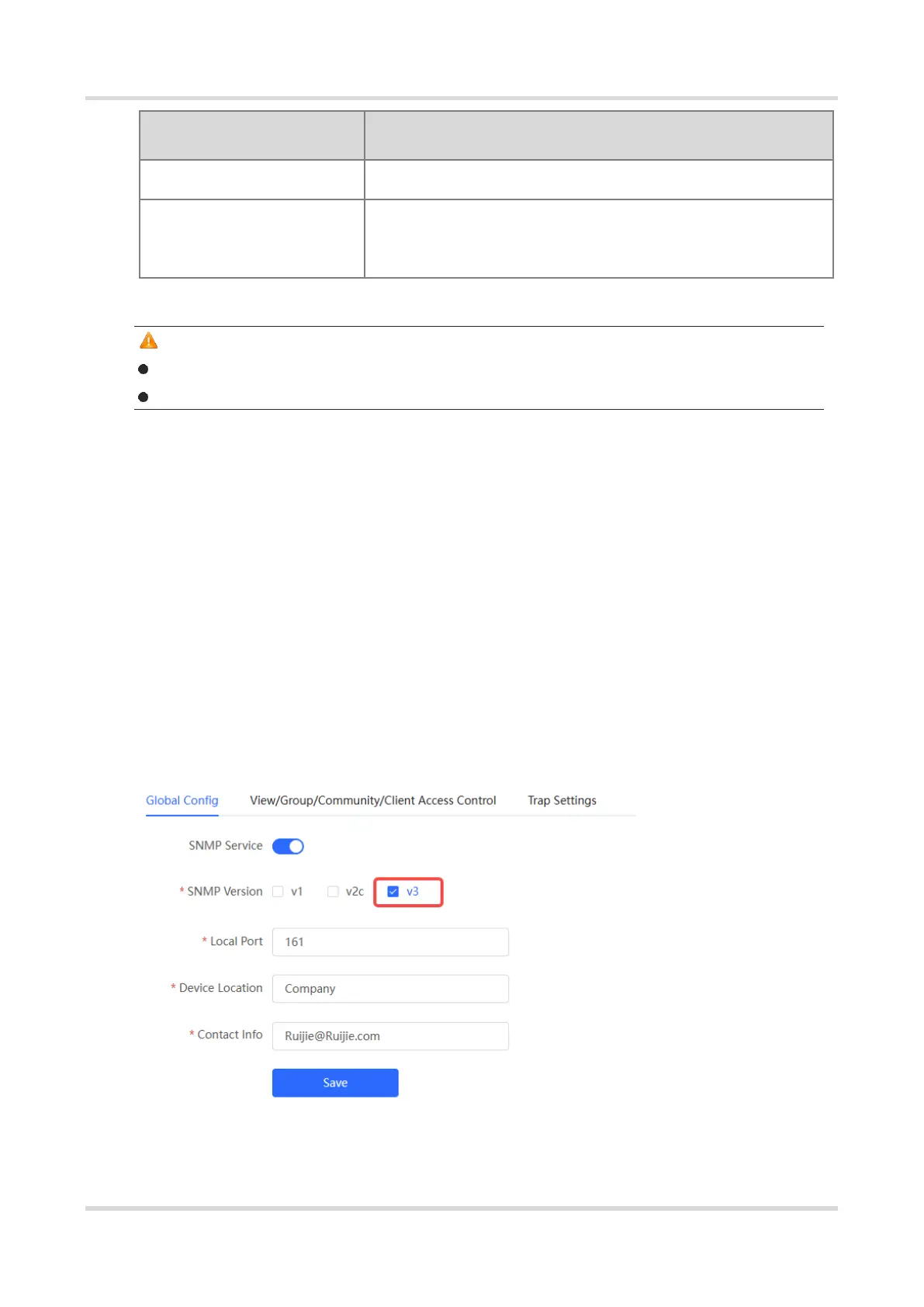 When the SNMP version is set to v3, the v3 group configuration is required.