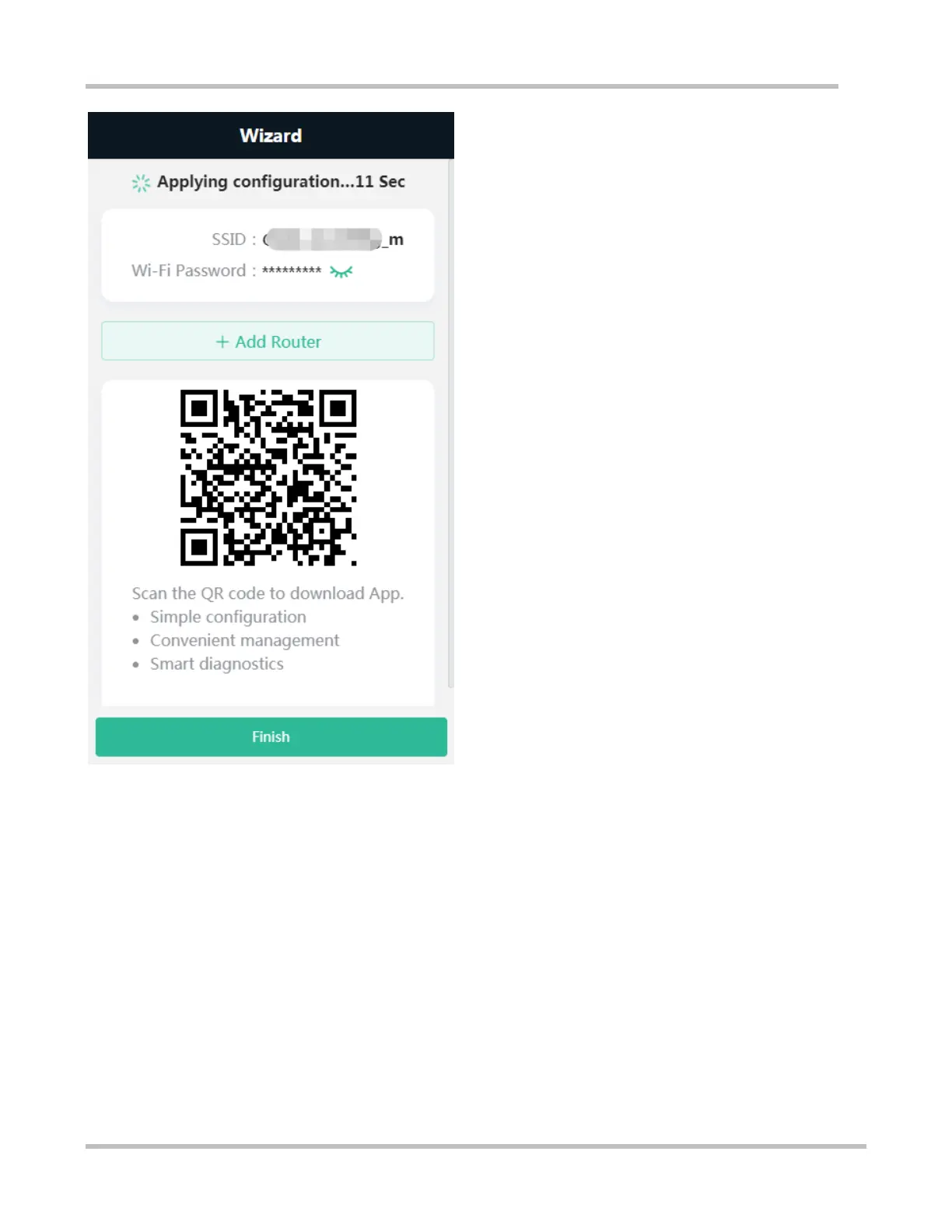 Note: For a new device which is configured via a mobile client, the automatically pop-up page does not display Finish.