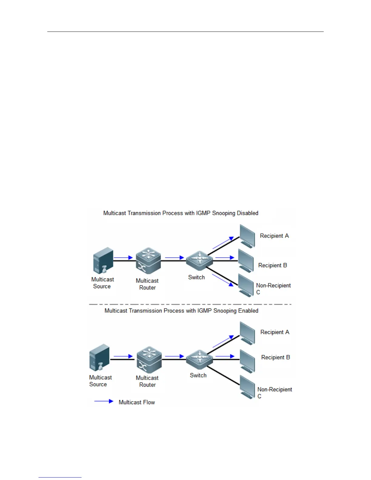 broadcasted in the VLAN; while without IGMP Snooping enabled, the known IP multicast