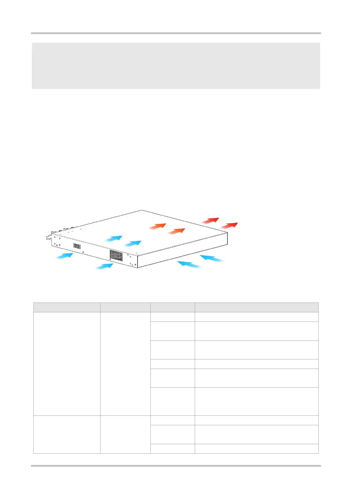The RG-S5310-48GT4XS-E switch adopts a left-to-right and front-to-right airflow to ensure normal operation. Maintain a minimum