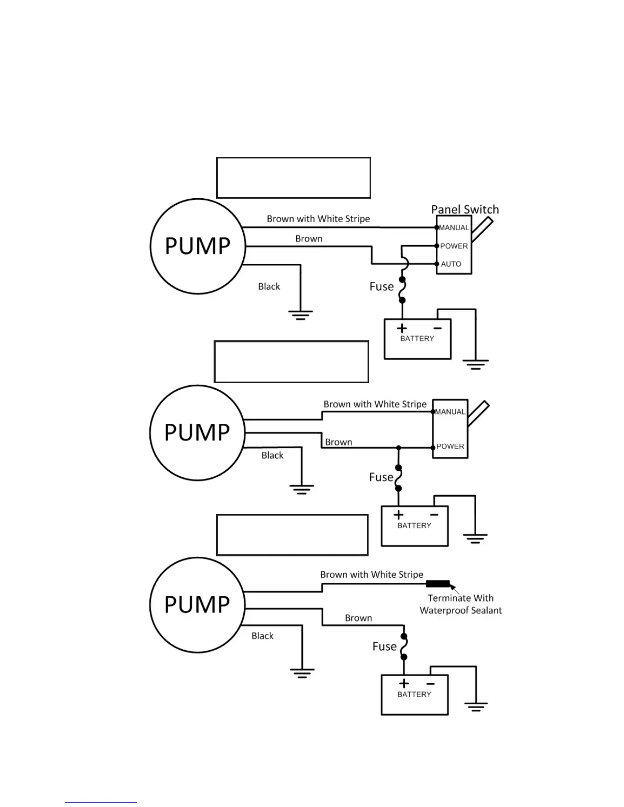 On 12 volt pump: Minimum voltage of 10.5 volts required.