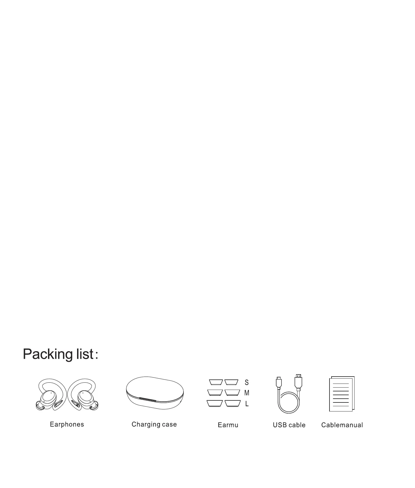 耳机 充电盒 耳帽 数据线 说明书