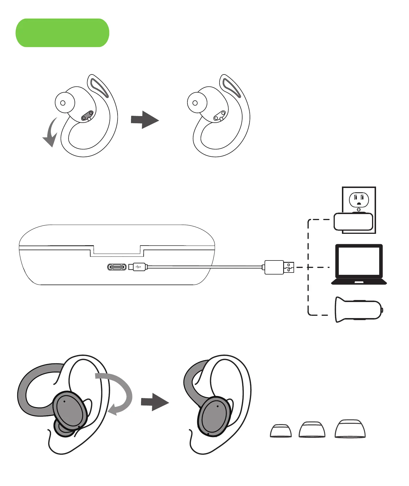 耳机 充电盒 耳帽 数据线 说明书