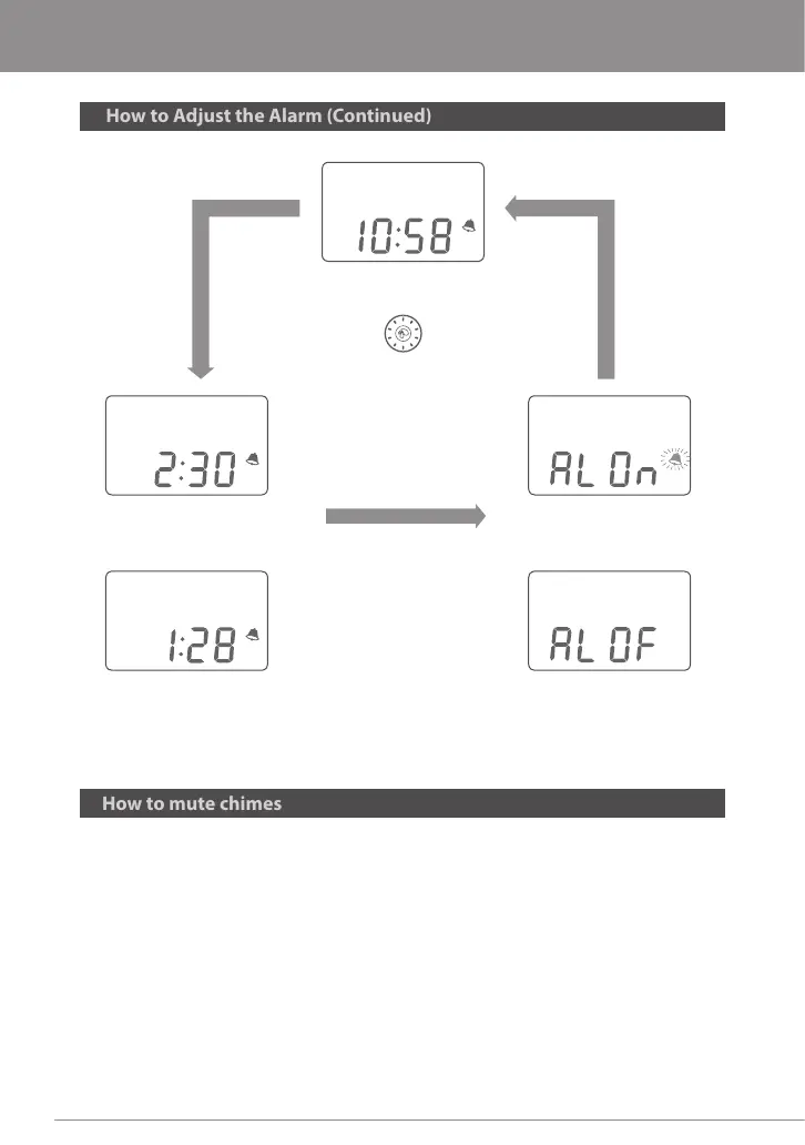 Adjust the Alarm P.21-22): "Alarm O" means chimes will be muted. "Alarm