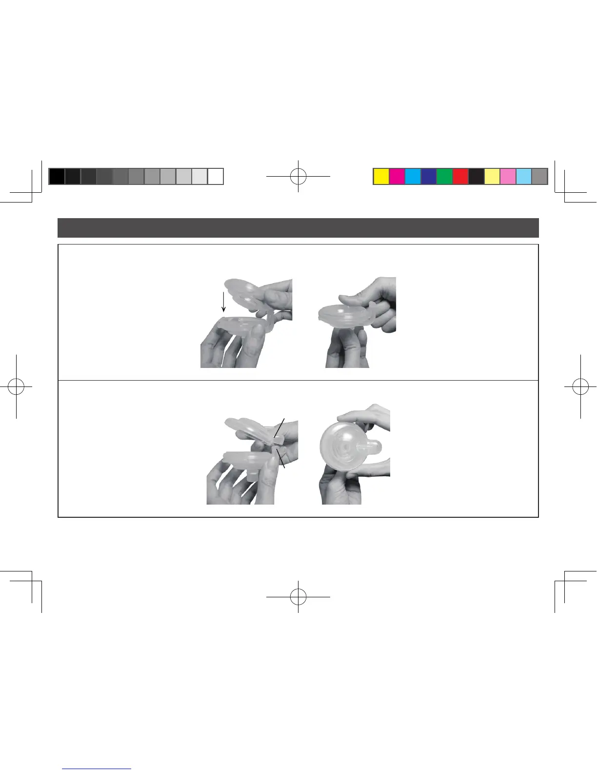 2. Place the Cap on the Cup & Diaphragm. (Be sure to align the hinge and hinge cover.) Press tightly to seal.