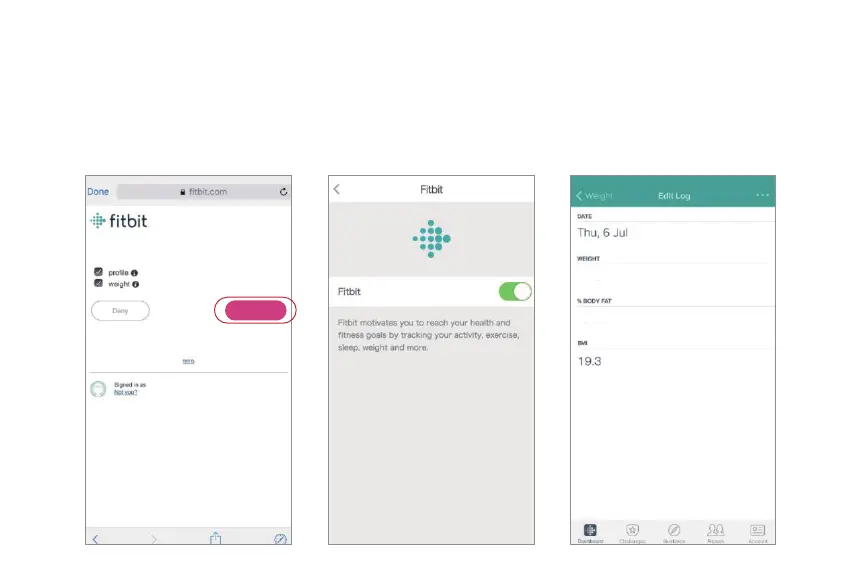 3. Tap “Allow” to access the Fitbit app. 4. After successfully connecting, your data will