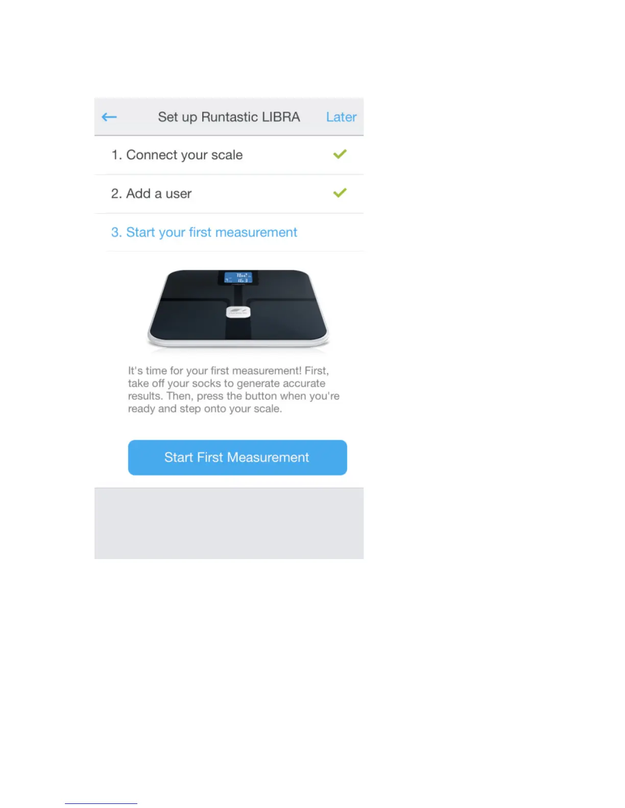 Runtastic LIBRA - Completing User Setup; Start First Measurement