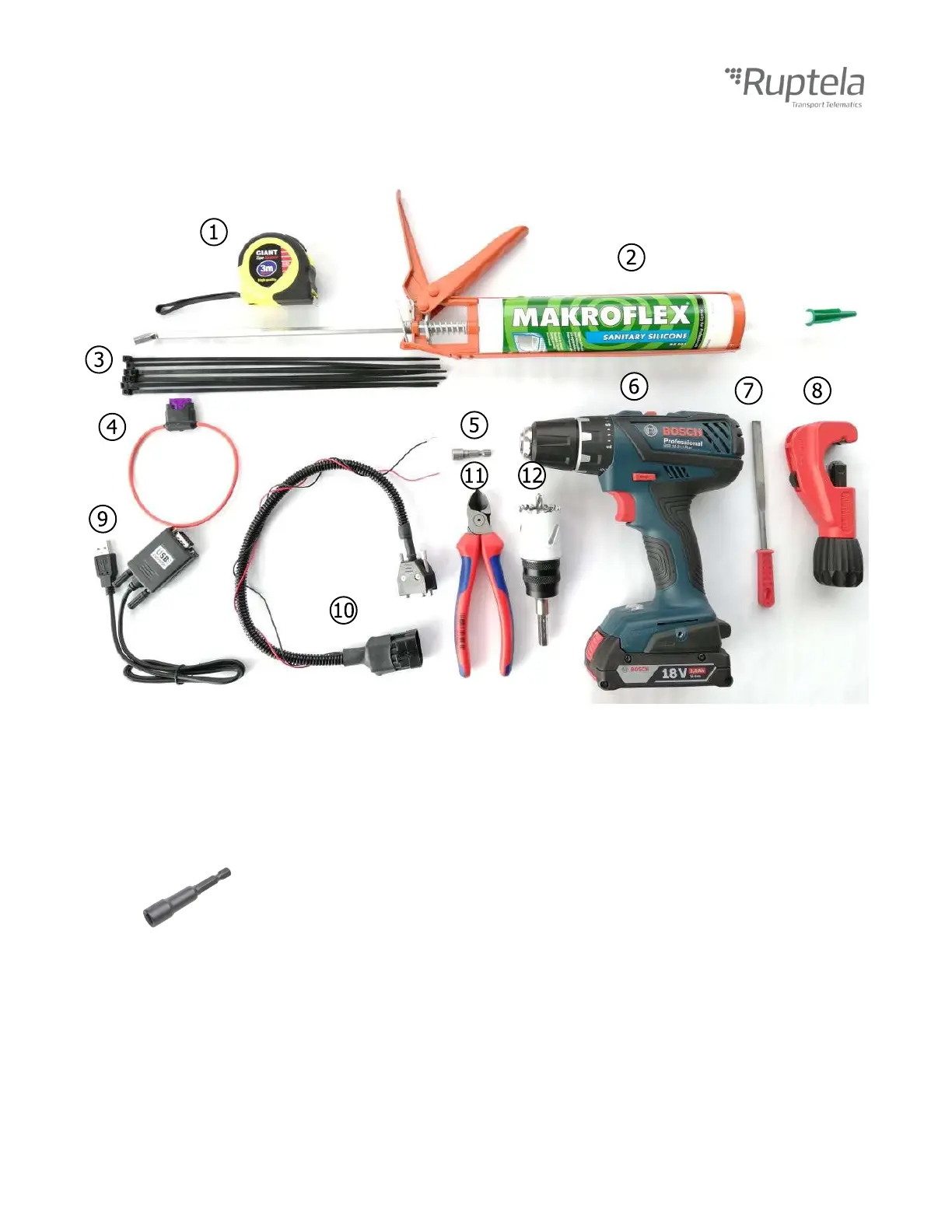 12. 38 mm hole saw and hole saw arbor. It must fit the cordless drill! Mandatory for FLS installation!