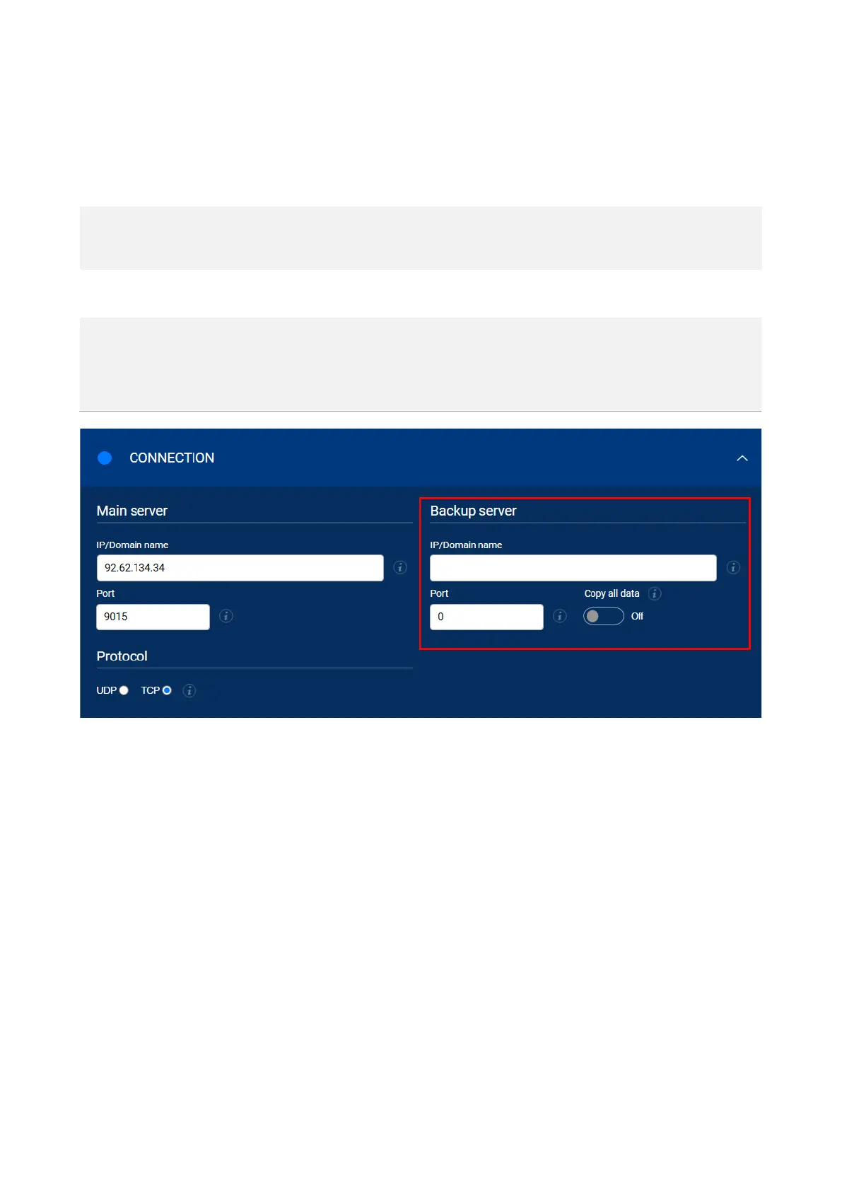 is reachable, no data is sent to the backup server. Both servers use the same protocol.