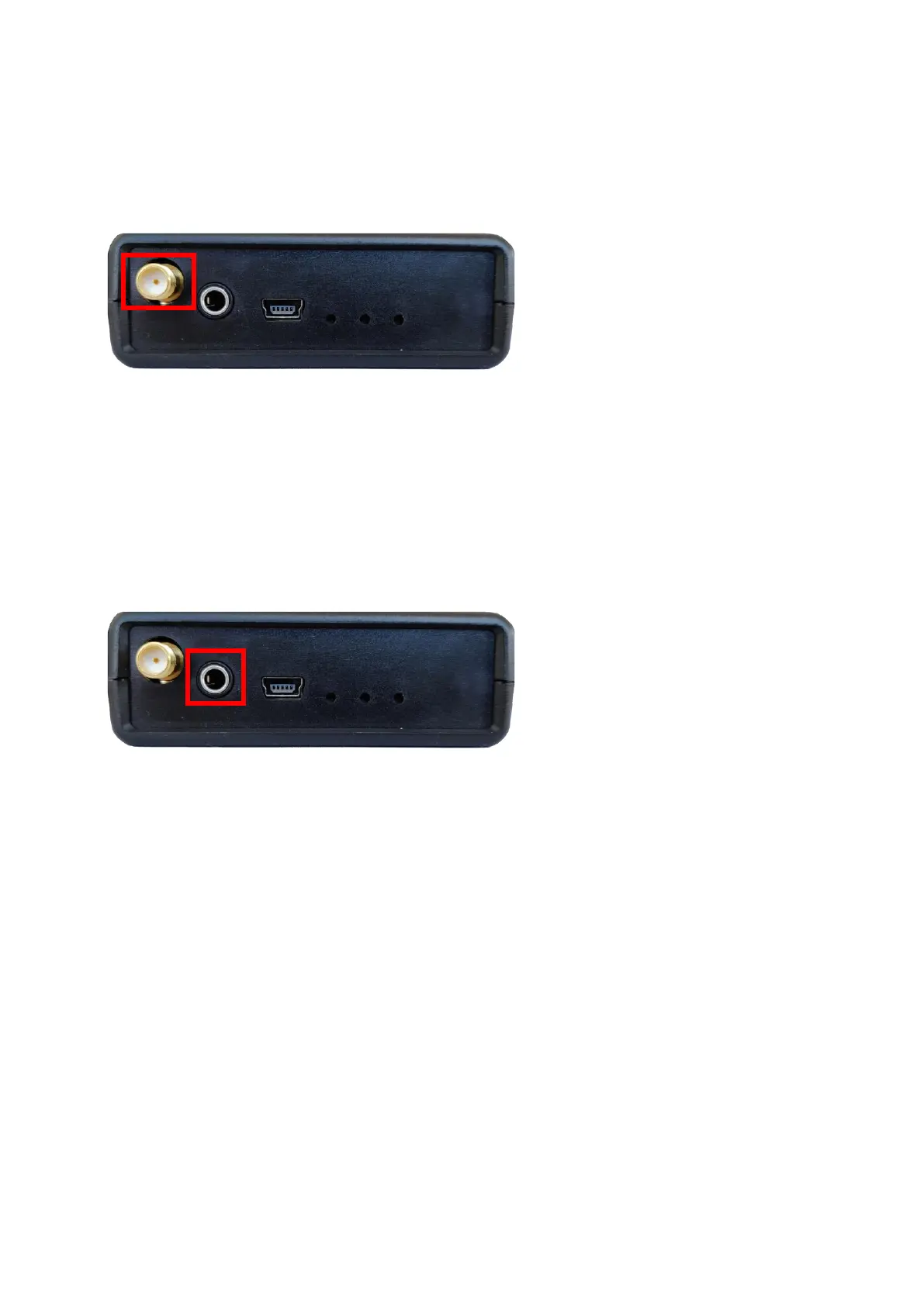 Connect the antenna cable to the antenna port as shown in the image below. Make sure that the