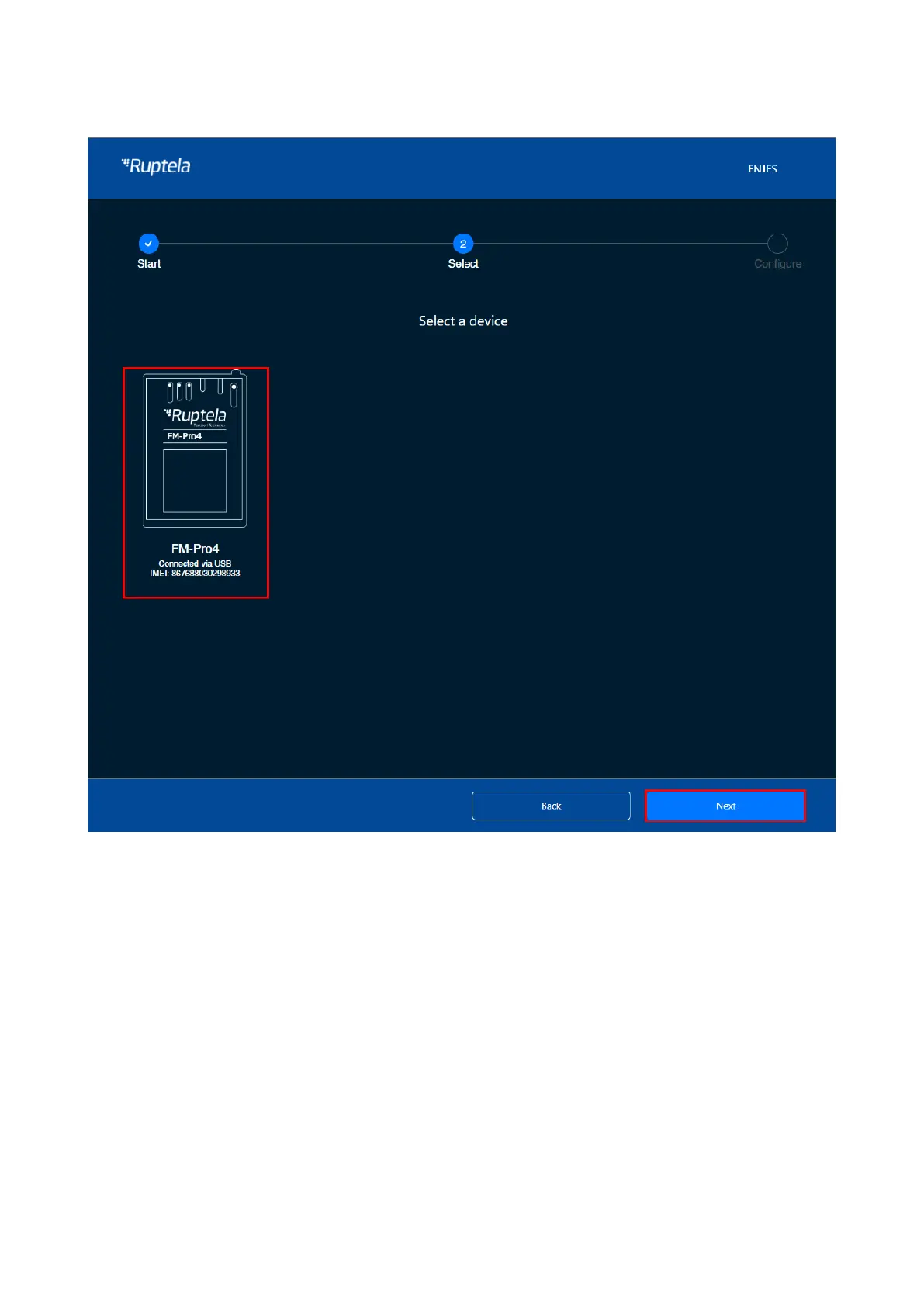 Select your device in the device selection menu by clicking on it. Click Next to continue.