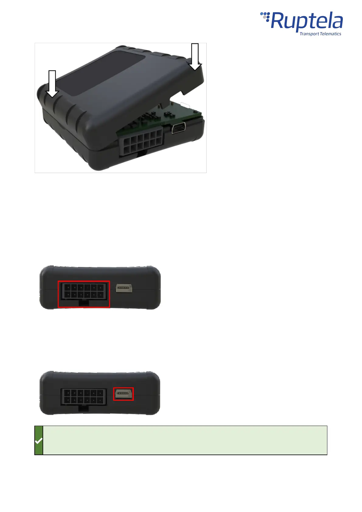 Connect the wiring harness to the 12 Pin Micro-Fit port on the device as shown in the image below. The