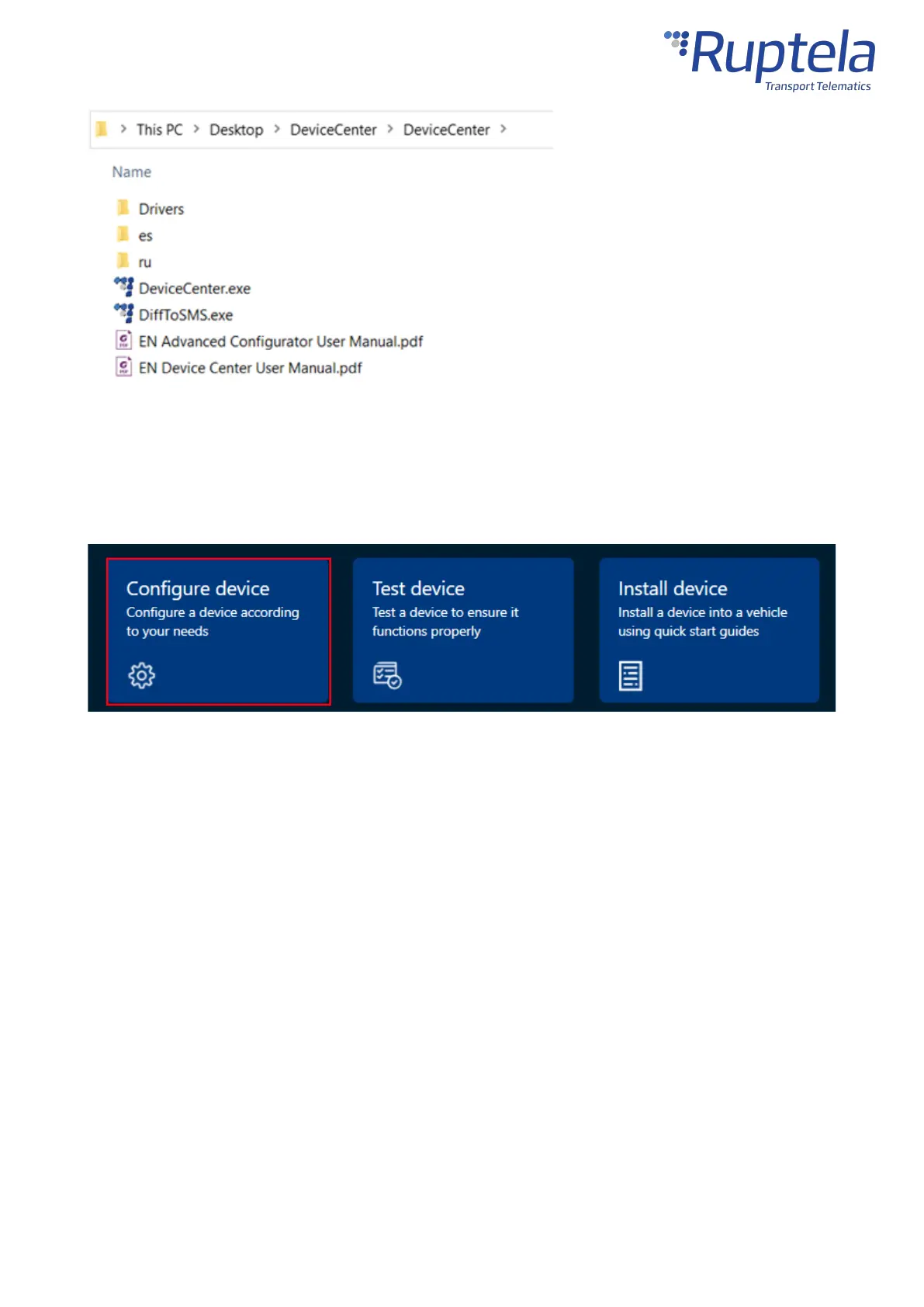 After launching the Device Center, clickConfigure devicein the main menu.