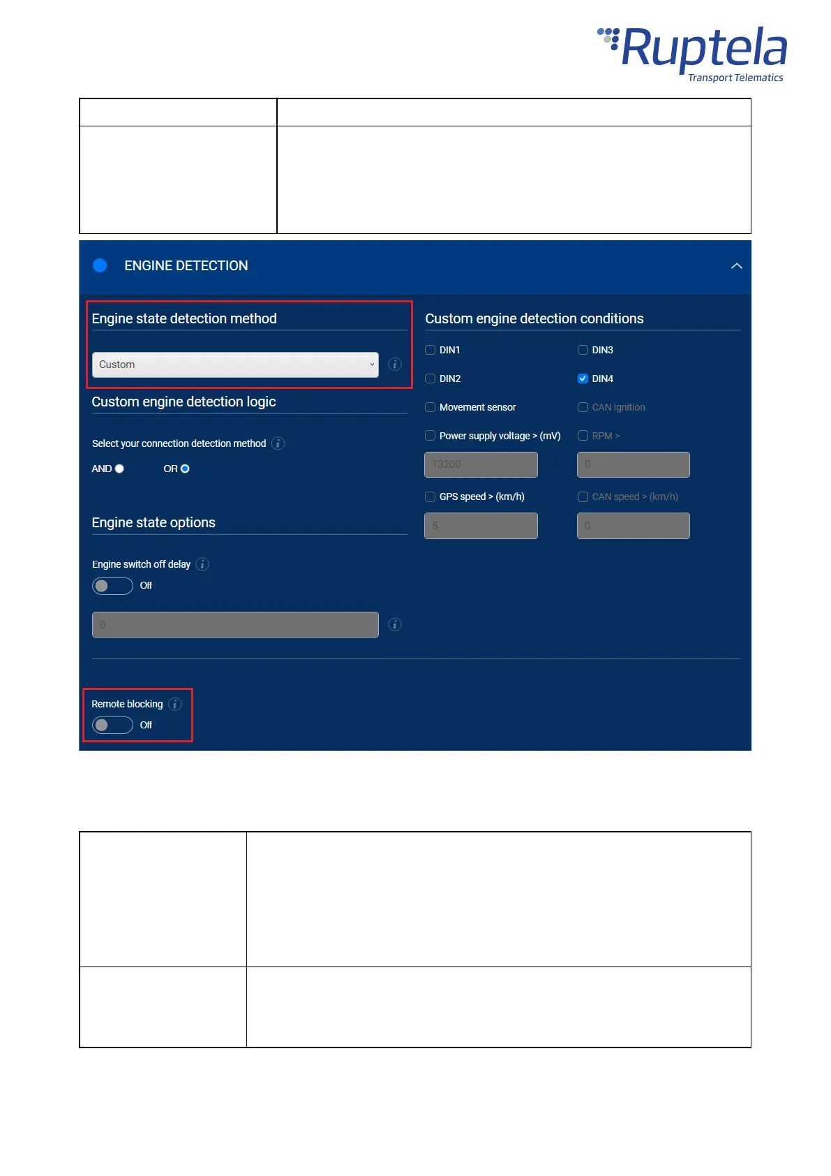 Which logical operator will be used for the engine detection conditions.