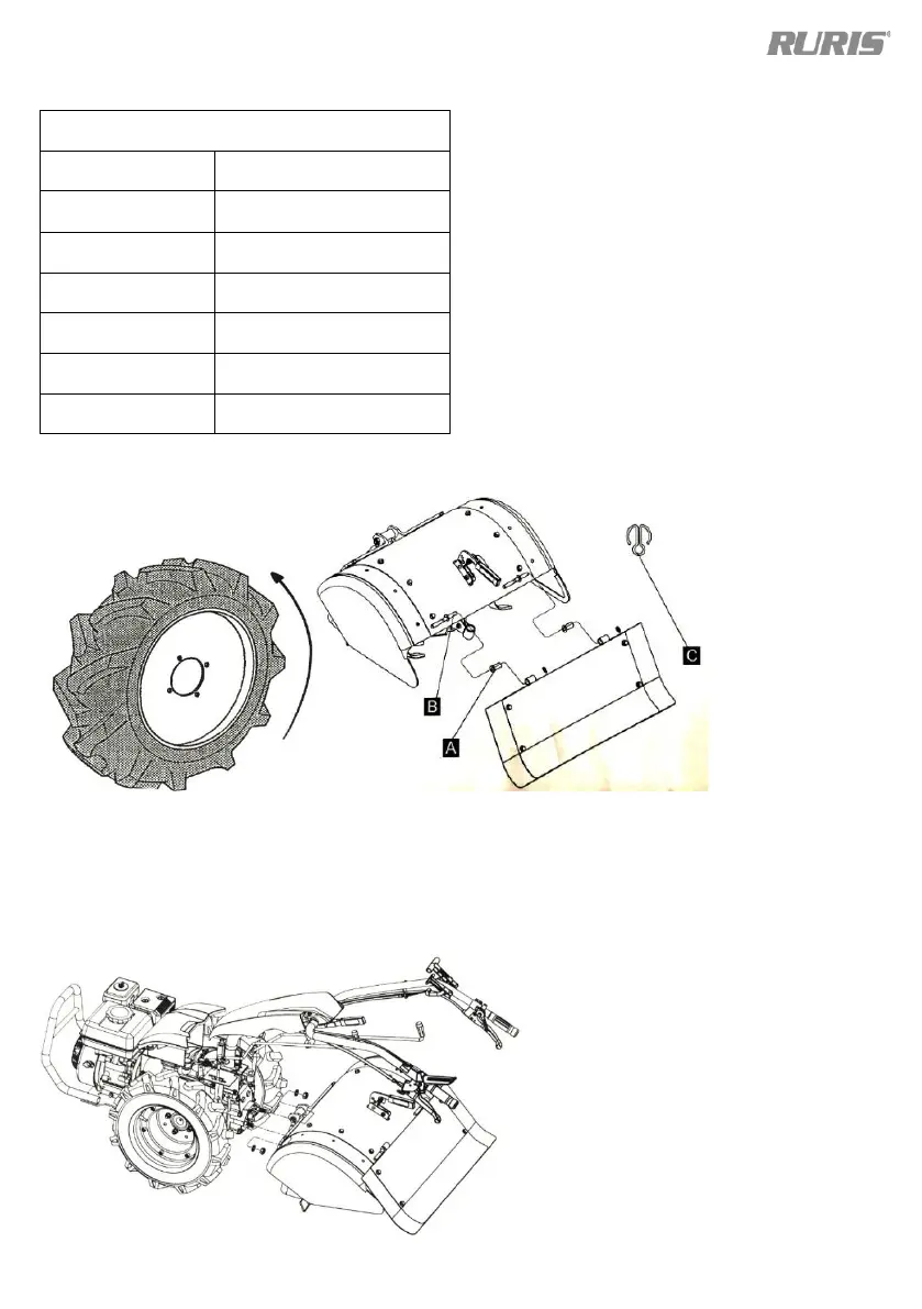 Montați apărătoarea spate pe axul B apoi introduceți știftul de blocare în orificiul axului B.