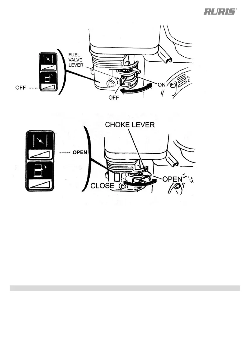 За да стартирате горещ двигател, оставете лоста на дросела в ОТВОРЕНО положение.