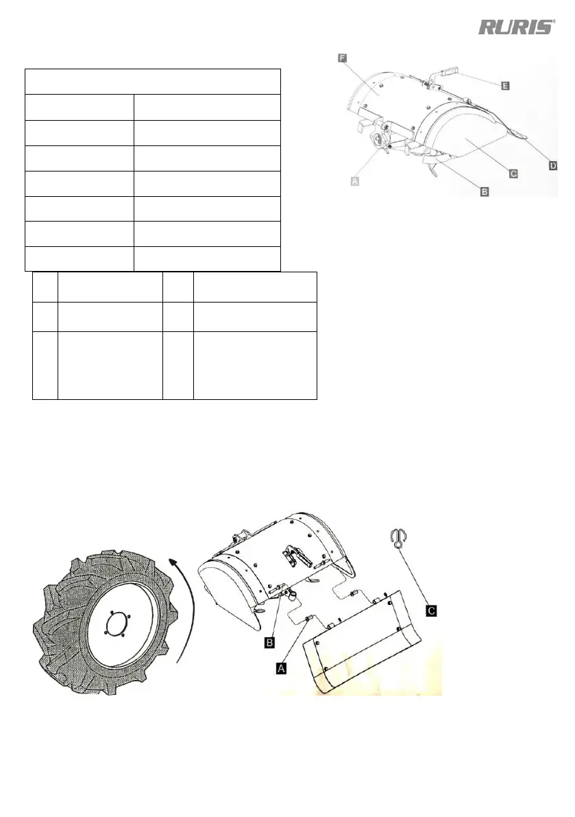 Zamontuj koła tak, aby profil opony był zorientowany zgodnie z poniższym rysunkiem.