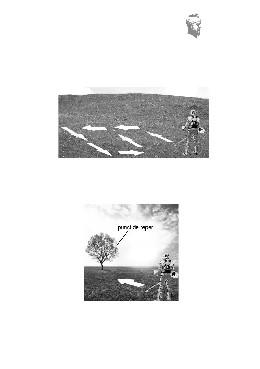 ● Înainte să începeți să cosiți fixați-vă un punct de reper orientativ către care