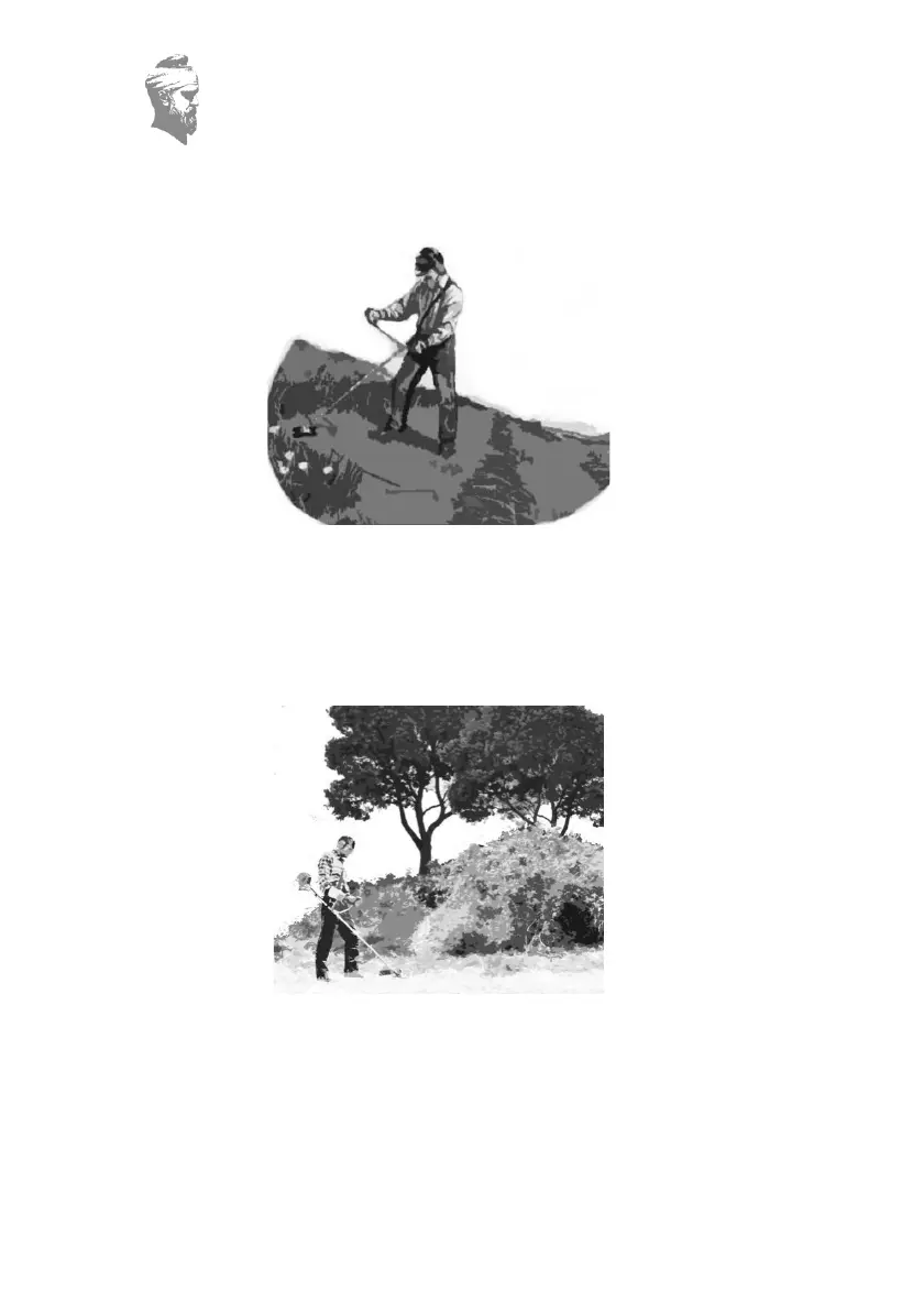 ● Pentru a putea cosi în siguranță poziționați-vă perpendicular pe axa