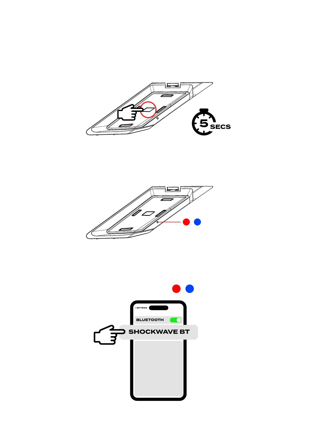 • The LED will flash RED & BLUE as the Shockwave looks for a connection device