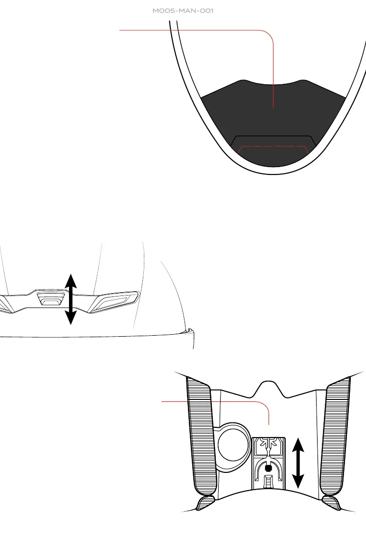 der Kinnvorhang vollständig unter der unteren Verkleidung liegt.