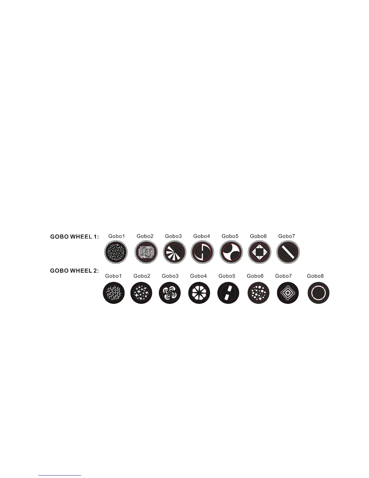 clockwise and counter-clockwise. Individual gobos on wheel 1 can be rotated