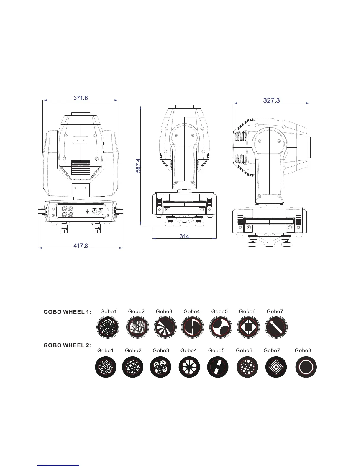Static gobo wheel ................. 8 gobos plus open, wheel rotation and shake