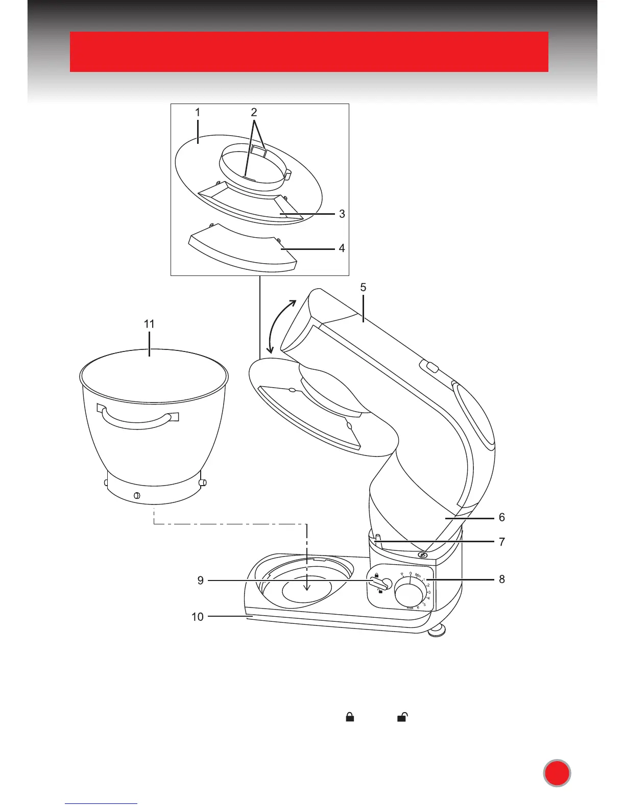 9. Head release lever: