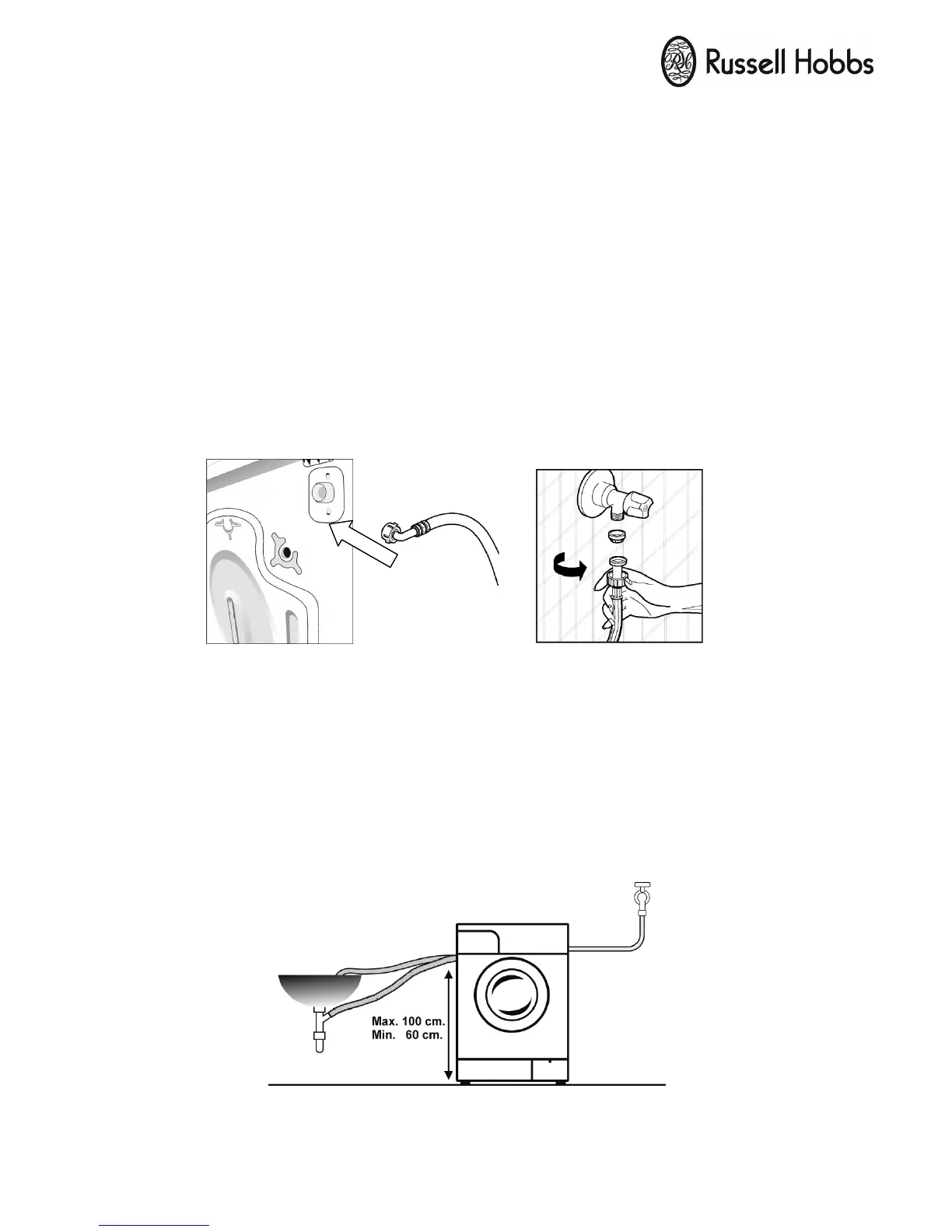The water drain hose should be mounted at a height of minimum 60 cm,