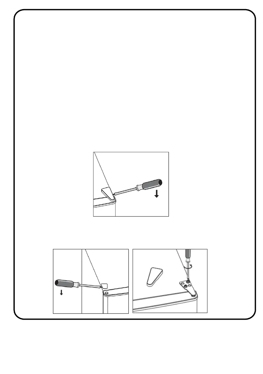 1. Remove the right top hinge cover with a flat headed screwdriver.