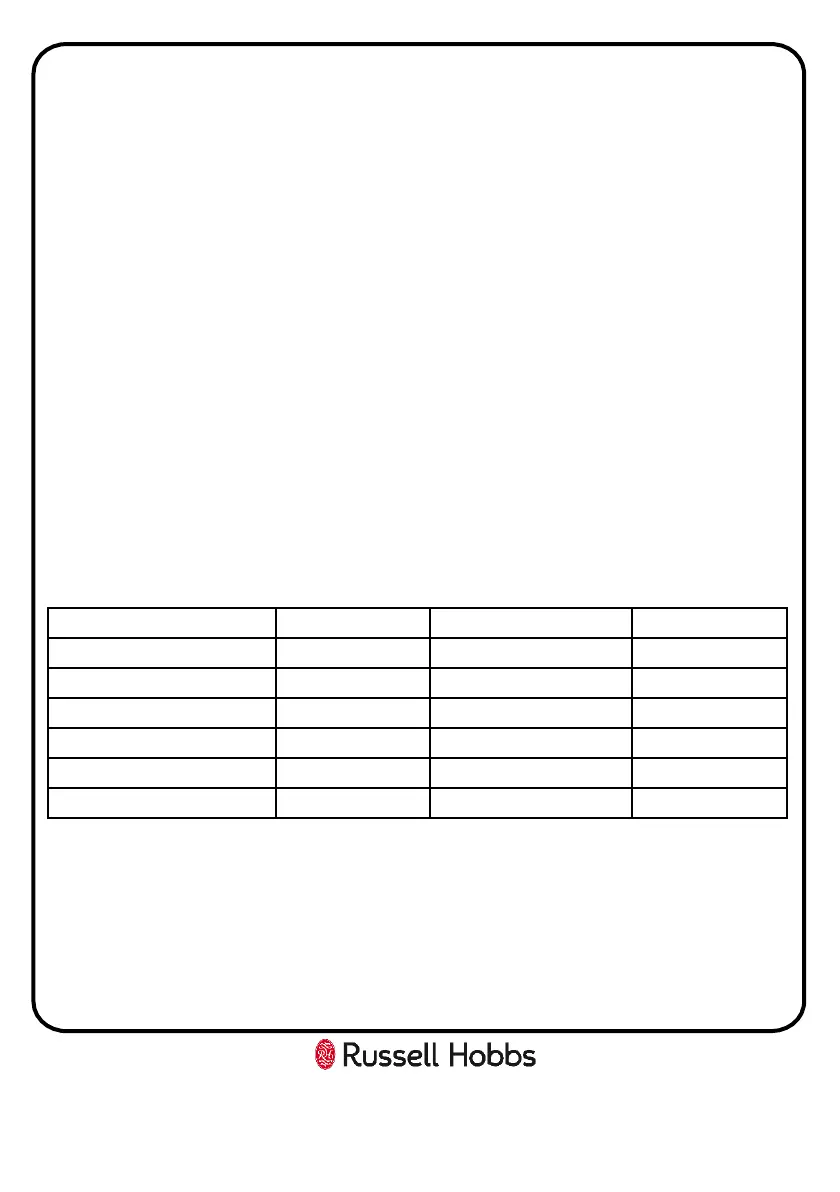 Important note: Do not overload your dryer. The following table lists some