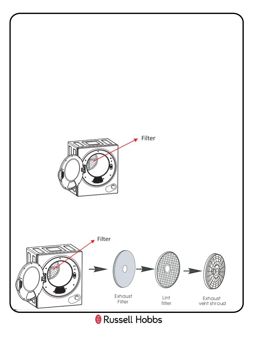exhaust vent shroud. The filter has 3 parts: Exhaust vent shroud, lint