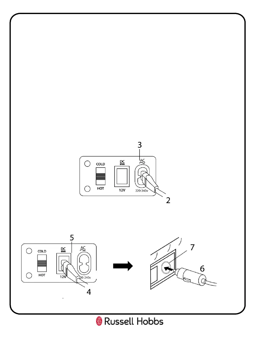 • To use in an automobile, connect the DC cord (4) to the DC output at
