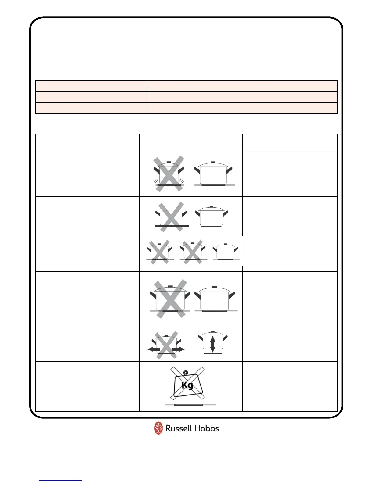 hob: pans may tip over.
