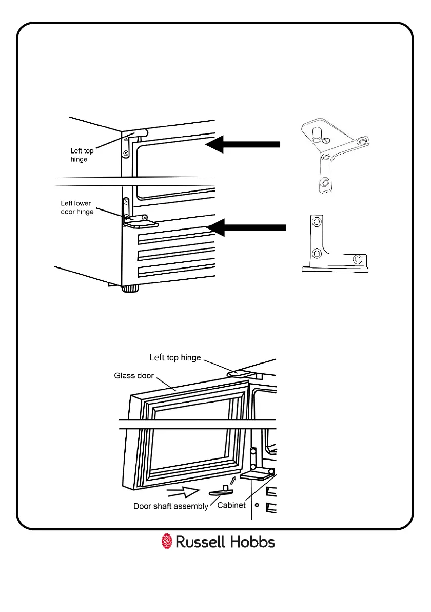 6. Turn the glass door around 180°, put the door shaft assembly from step 1 into
