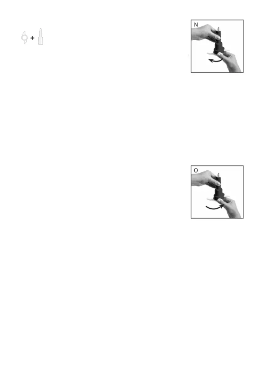 2. Place the dough blade onto the blade shaft and turn it clockwise to lock it into place (N).