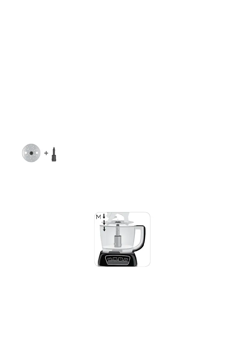 shaft in processor bowl (M). You may need to rotate disc slightly until it ts onto post.