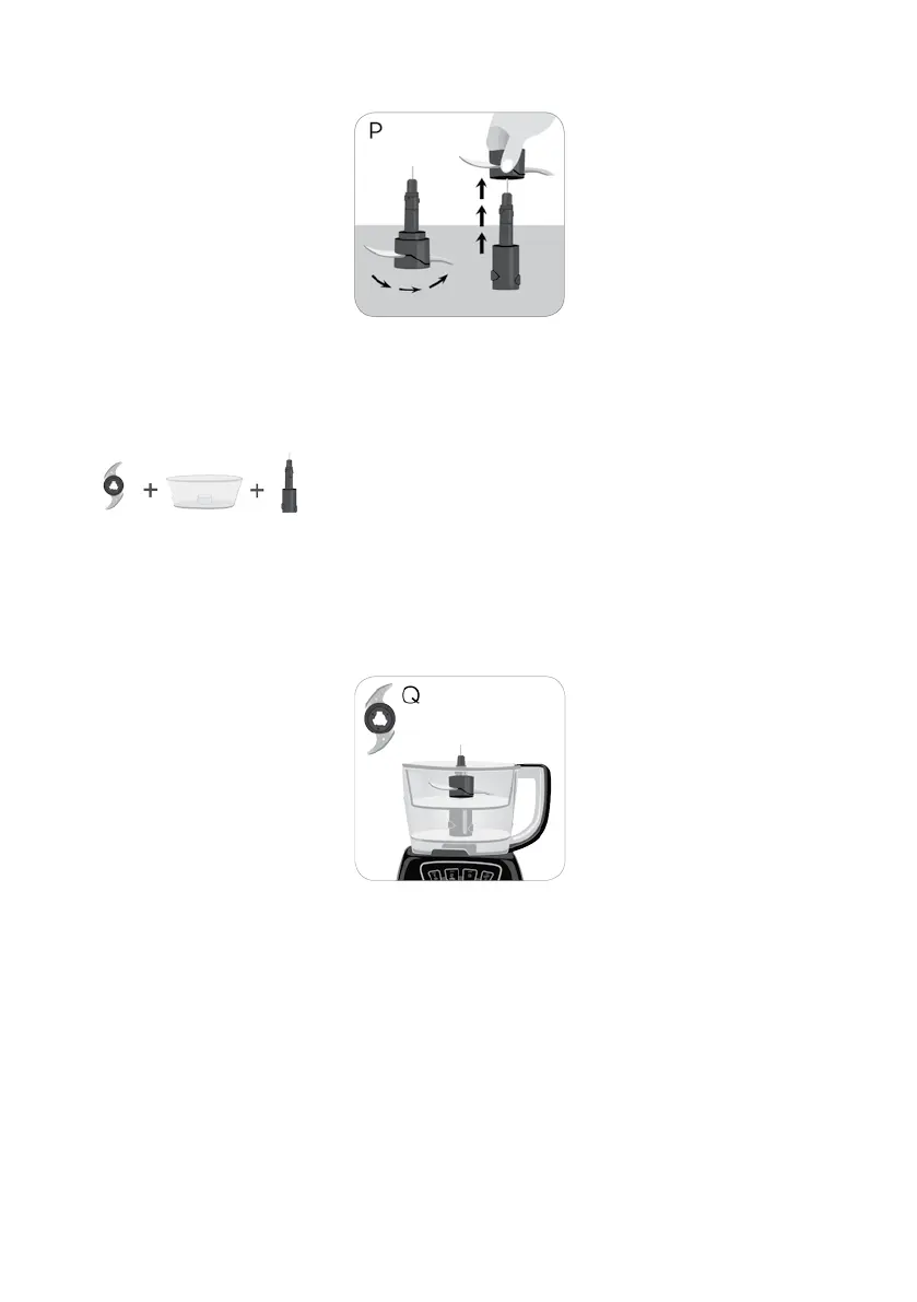 • Carefully place the mini S blade on blade shaft in bottom of mini processor bowl.